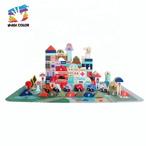 חם מוכר צעצוע חינוכי עץ עירוני אבני בניין לבנים w13a327