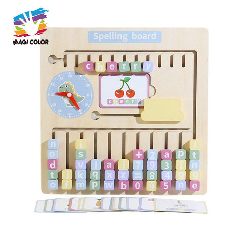 กระดานเรียนรู้การสะกดแบบโต้ตอบบล็อกตัวอักษรไม้พร้อมนาฬิกาสอนและการ์ดคำที่แสดง W12F298