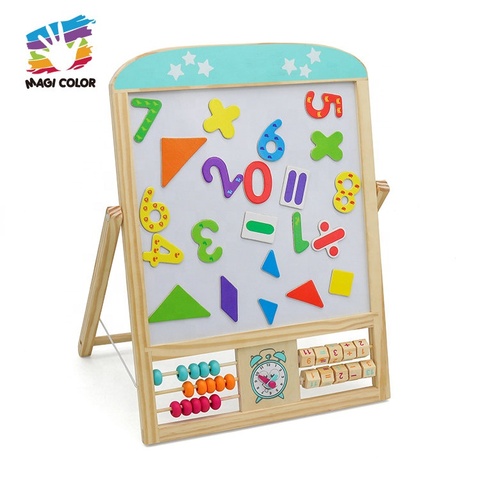 กระดานไม้แม่เหล็กสองด้านสำหรับเด็กกระดานวาดรูปและเขียนแนวตั้งพร้อม W12B314นับตัวอักษรลูกปัด